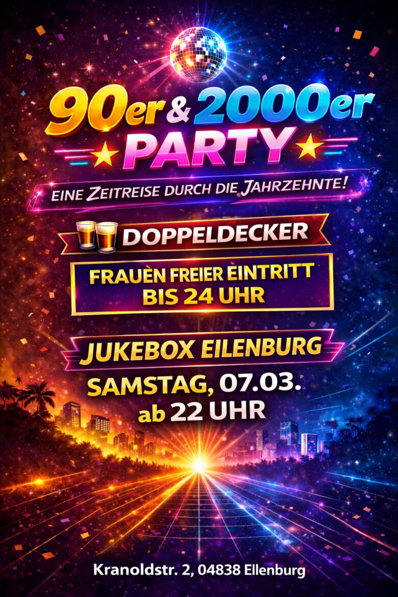 Am Samstag, 07.03. ab 22 Uhr verwandelt sich die Jukebox Eilenburg in die ultimative Partyzone für alle Fans der 90er und 2000er.